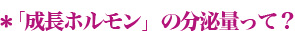 成長ホルモンの分泌が最も多い時期は、思春期を迎えた直後と言われています。急に背が伸びたり、胸が大きくなったりするのもその表れ。例えば、思春期前の成長ホルモンの分泌量を100とすると、思春期直後のピーク時に200に達しますが、二十歳前後に100に戻り、30代は7割程度、40代では半分にまで減少してしまいます。 |