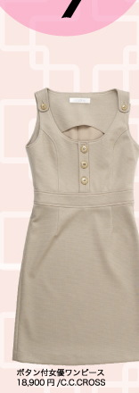 ジャンパースカート風なので春先にニットやブラウスとのレイヤードスタイルもGOOD! ひざ上丈が野暮ったく見えず、すっきり! 胸下切り替えなのでウエストベルトマークなどでスタイル良くみえる。 (スタイリスト:藤井エヴィさん)