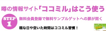 インターネット環境さえあれば、いつでもどこでもチェックできる「ココミル」。無料会員登録してポイントを貯めると、コエンザイムやαリポ酸など、美容や健康をサポートする無料サンプルがもれなくゲットできます♪